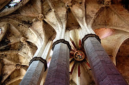 características de la iglesia no soy el más indicado para hacerlas, pues existen muchas y distintas en cualquier navegador. Si indicar que llama poderosamente la atención el claustro cuadrado y de doble piso, con las columnas decoradas con adornos simbólicos y los escudos de ambos reyes, con las letras “F” e “Y”. Hay figuras humanas, como un niño apuñalando a un águila, un mono jinete tocando la flauta, otro sobre un orinal y todas aquellas que la imaginaría gótica tuvo a bien para adornar.